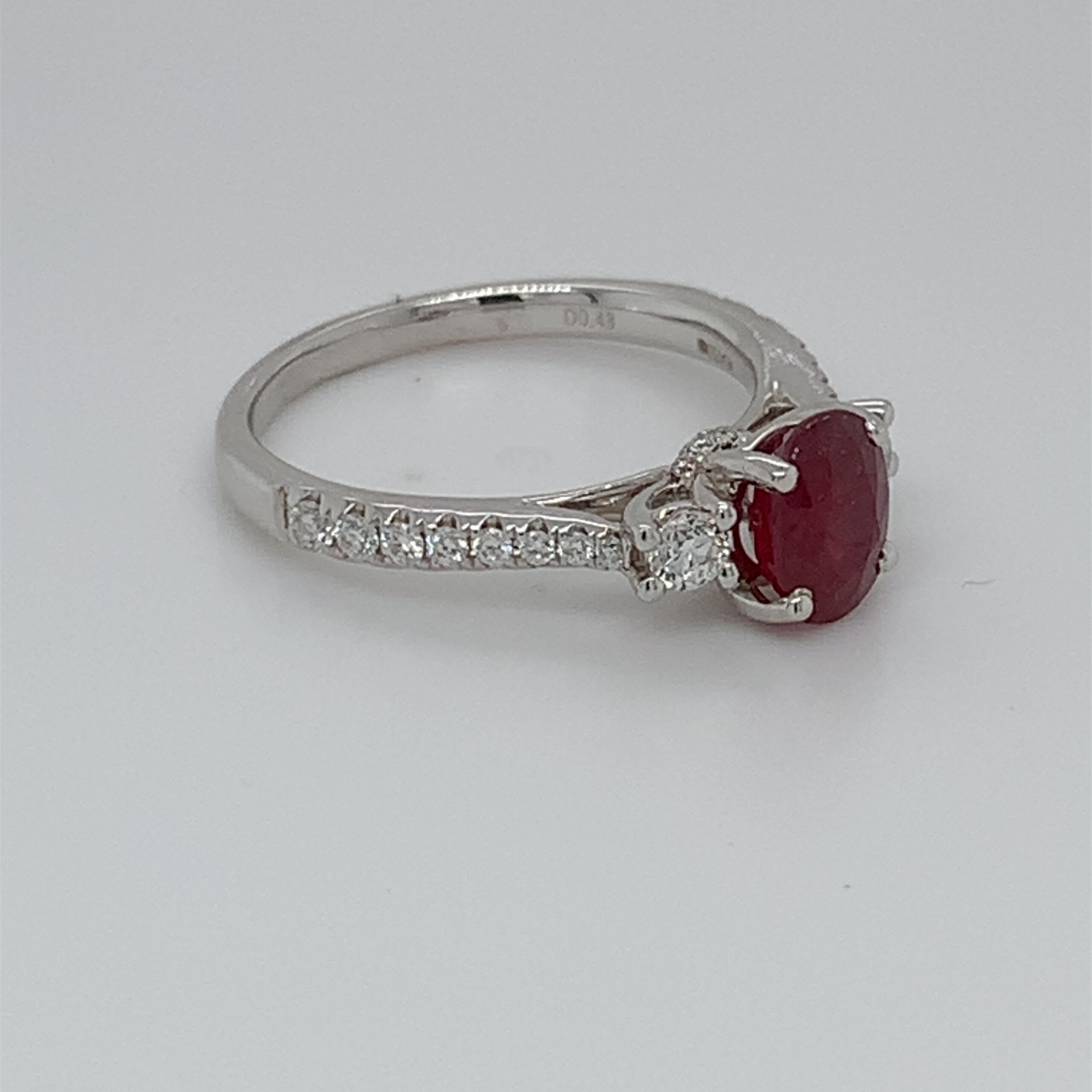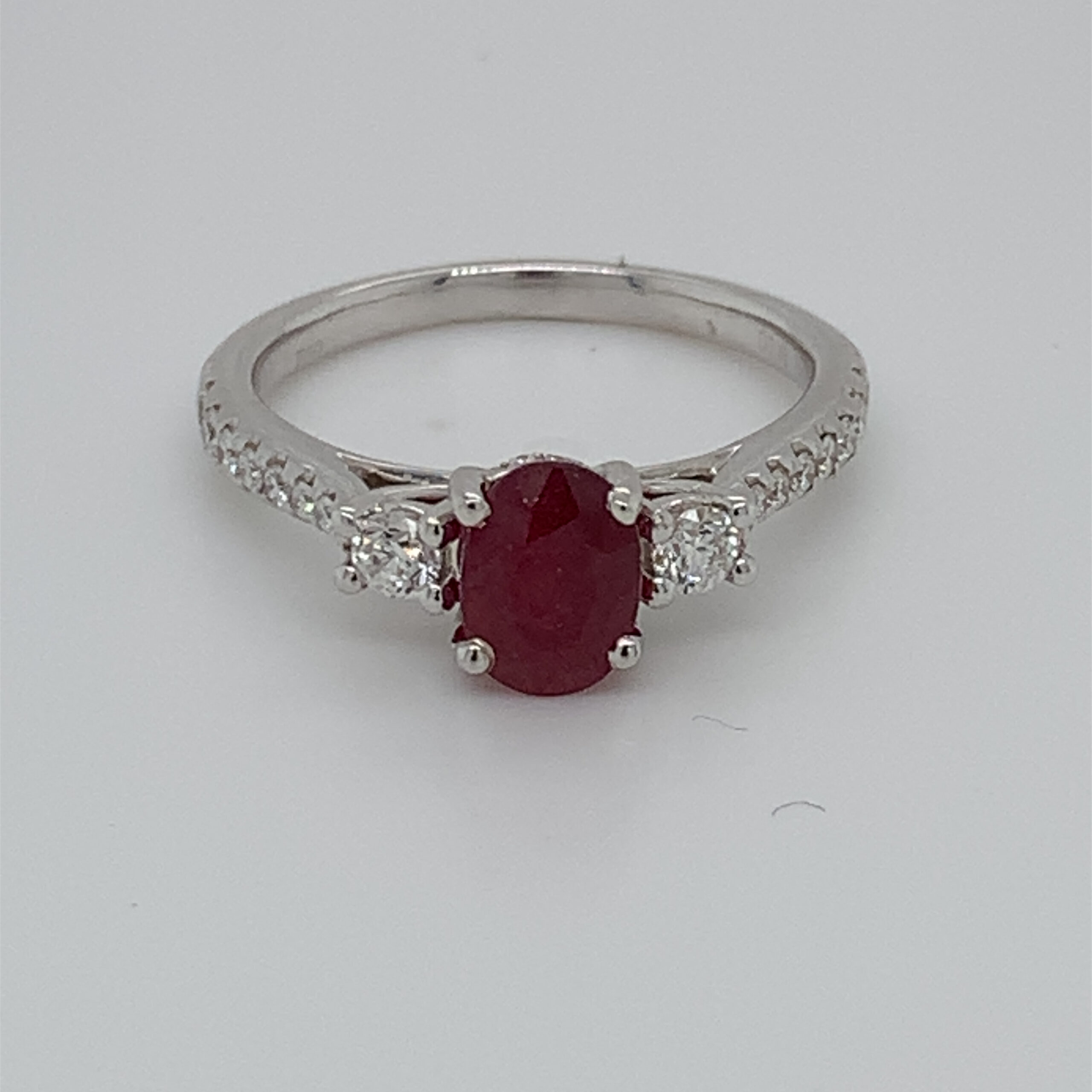 18ct White Gold Ruby & Diamond 3 Stone Ring