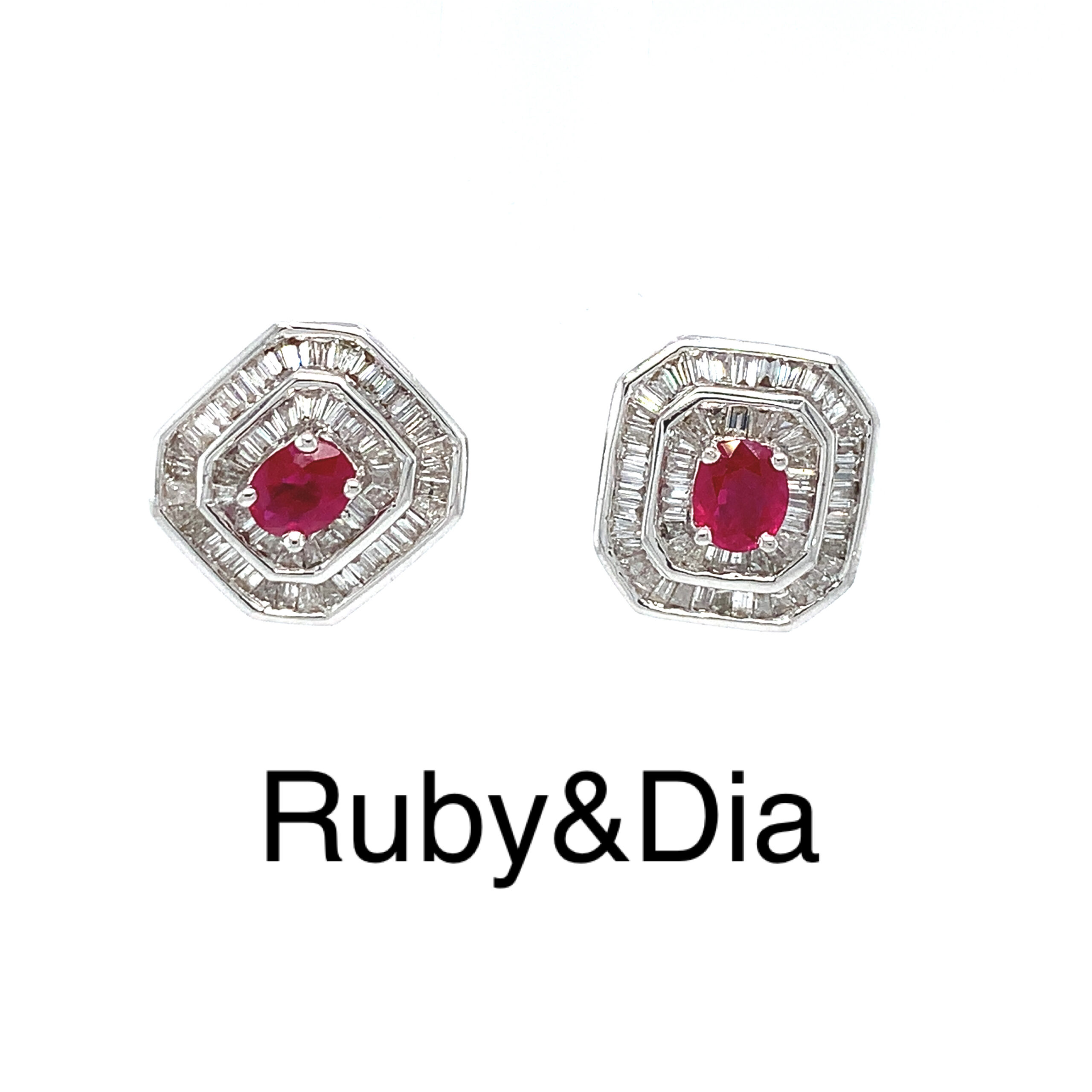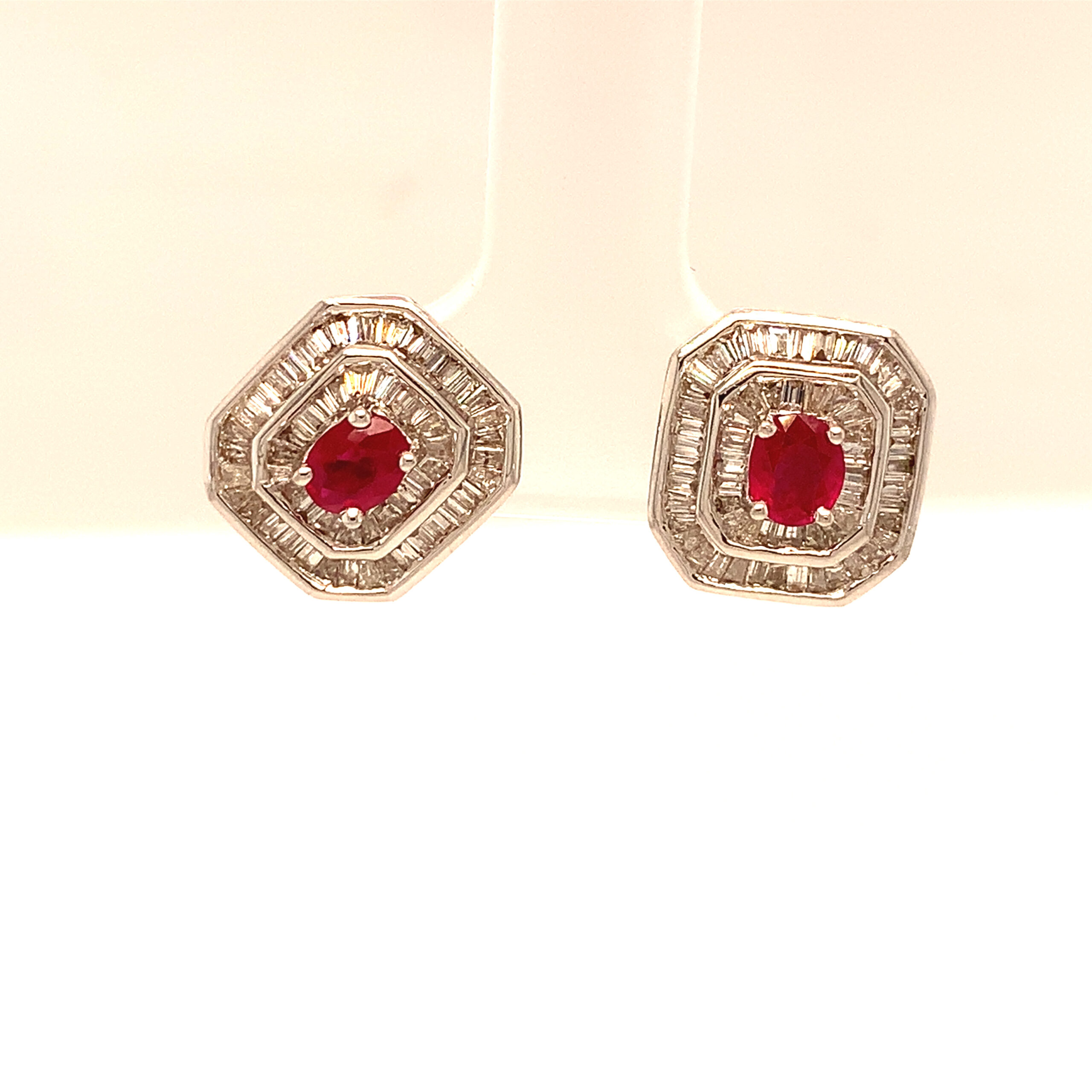18CT White Gold Square Baguette Ruby & Diamond Earrings