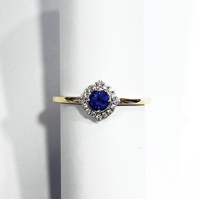18ct yellow gold round brilliant cut sapphire and diamond cluster ring