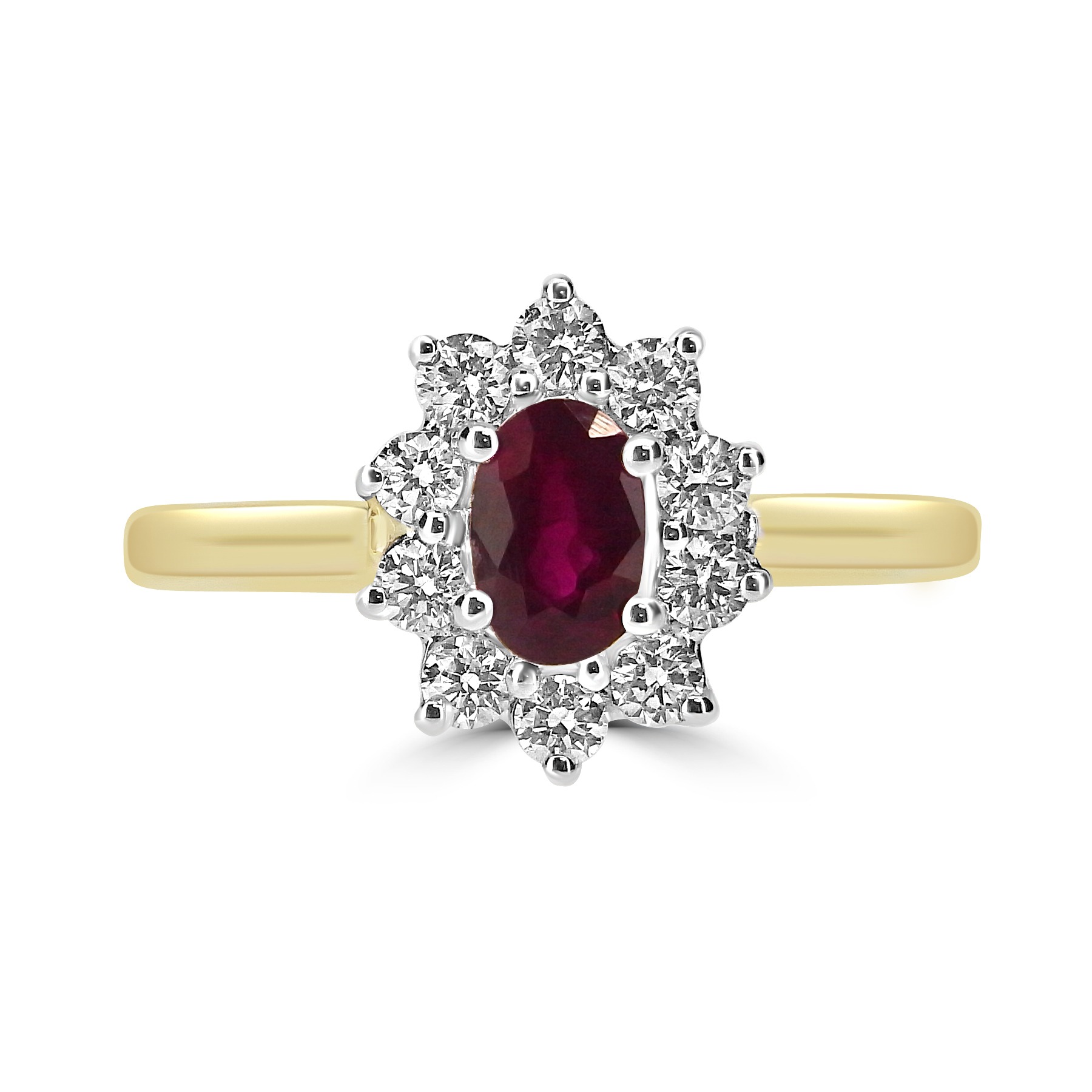 18ct Yellow Gold Ruby & Diamond Cluster Ring