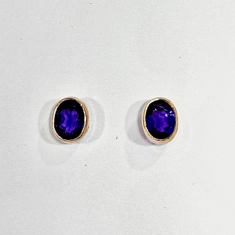 9ct yellow gold 7x5mm oval amethyst stud earrings