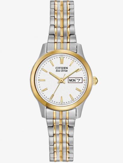 Ladies Eco Drive White Dial Two Tone Bracelet Watch – EW3154-90A
