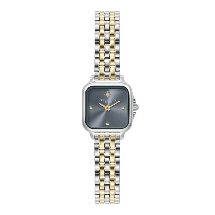 Make it mini with our best selling Grosvenor watch – now with a petite 20mm square dial. This tiny classic is big on detail with dainty North Star and crystal markers. A radiant sunray dial in on-trend Chalk Blue and beautiful two-tone gold-plated and silver-tone 5 link bracelet make this the perfect stackable watch. Good things really do come in small packages.