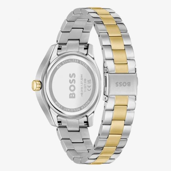 The BOSS ladies Lida Watch is crafted with meticulous attention to detail, this watch is a celebration of sophistication and refinement. The luxurious Bi-Colour finish adorns the round chronographic dials, adding a touch of opulence to its design, perfect for everyday wear.