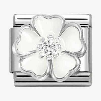 Original Nomination Classic Link in stainless steel with raised Pink Flower with CZ symbol in sterling silver and White enamel. Coloured enamel and White Cubic Zirconia detail are applied by hand. Celebrate the arrival of Spring and the rebirth of nature with this new Link to add to your bracelet.
