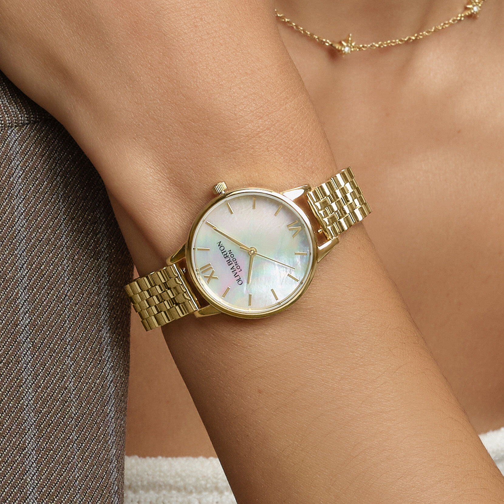Olivia Burton Mother of Pearl Gold Plated Watch- 24000169