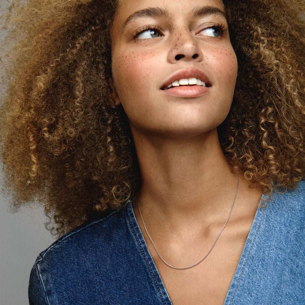No jewellery collection is complete without a simple versatile necklace that can be worn by itself or accessorised with your favourite pendants. One of the most essential pieces for any wardrobe, our sterling silver necklace features a sliding clasp, flat interlocking chain links and a dangling curb chain. Wear the slider necklace on its own or layer it for a fashion forward look and adjust to suit your desired length.
