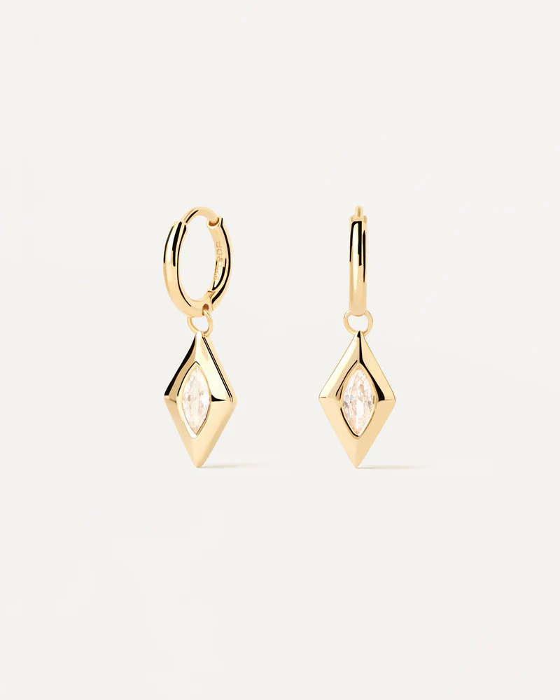 Gold-plated hoop earrings with hanging rhombus set with oval zirconia