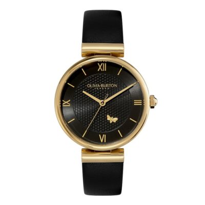 Signature 36mm Minima Bee T-Bar Gold & Black Leather Strap Watch – 24000099