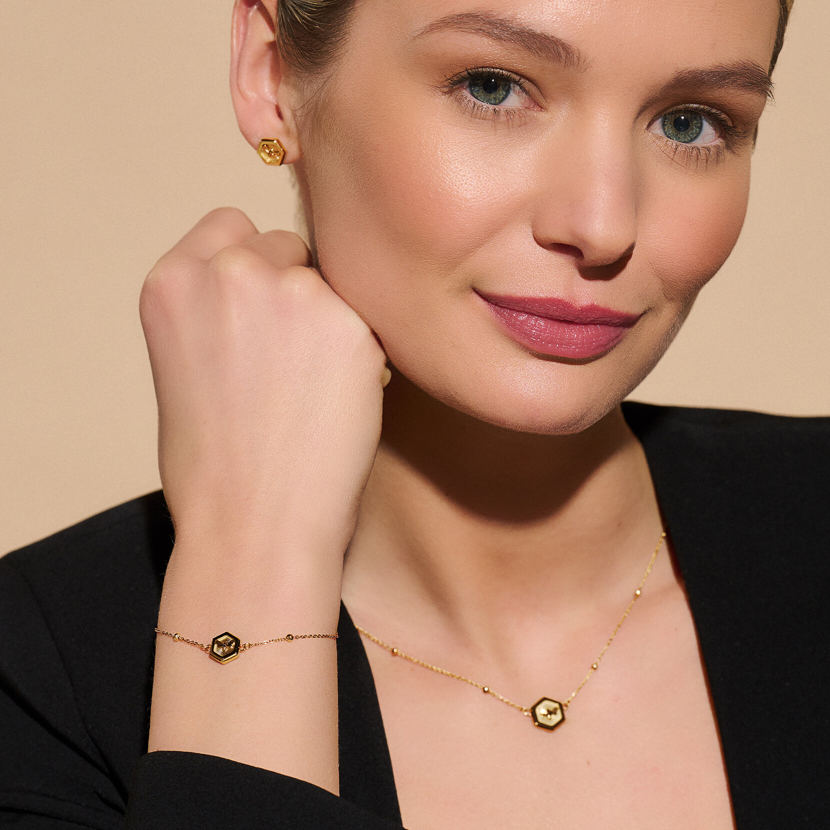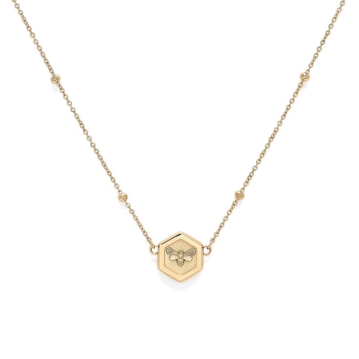 Striking and modern, the Minima Bee and Honeycomb Pendant Necklace is the latest way to wear everyone’s favourite bee. Inspired by the beehive, the geometric gold-plated pendant features a tiny bee. Finished with an on-trend bead detail chain, this is one you won’t want to take off. Can’t get enough? Pair with the Minima Bee and Honeycomb Bracelet.