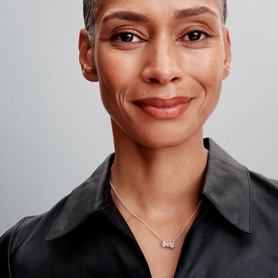 You’re never fully dressed without a bow. But this time, that bow is made up of sparkling cubic zirconia, set in a sterling silver bow-shaped centrepiece, fixed to an adjustable chain. The stones have been especially cut to create a bow shape when arranged, ready to tie all your looks together. Wear this collier necklace for a touch of festive sparkle, or wrap it with love for the one who’s top of your gift list.
