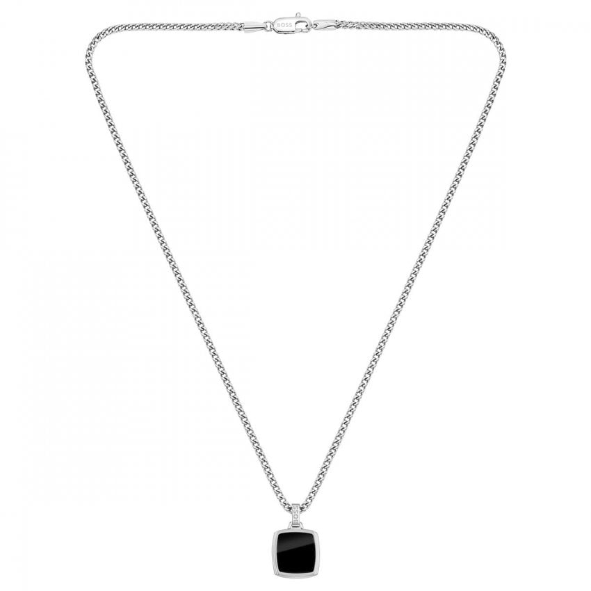 The Men’s BOSS Onyx Necklace features a sleek square pendant with a black plated finish, crafted from durable stainless steel. Paired with a sturdy chain, this modern accessory adds a touch of elegance and versatility to any outfit.
