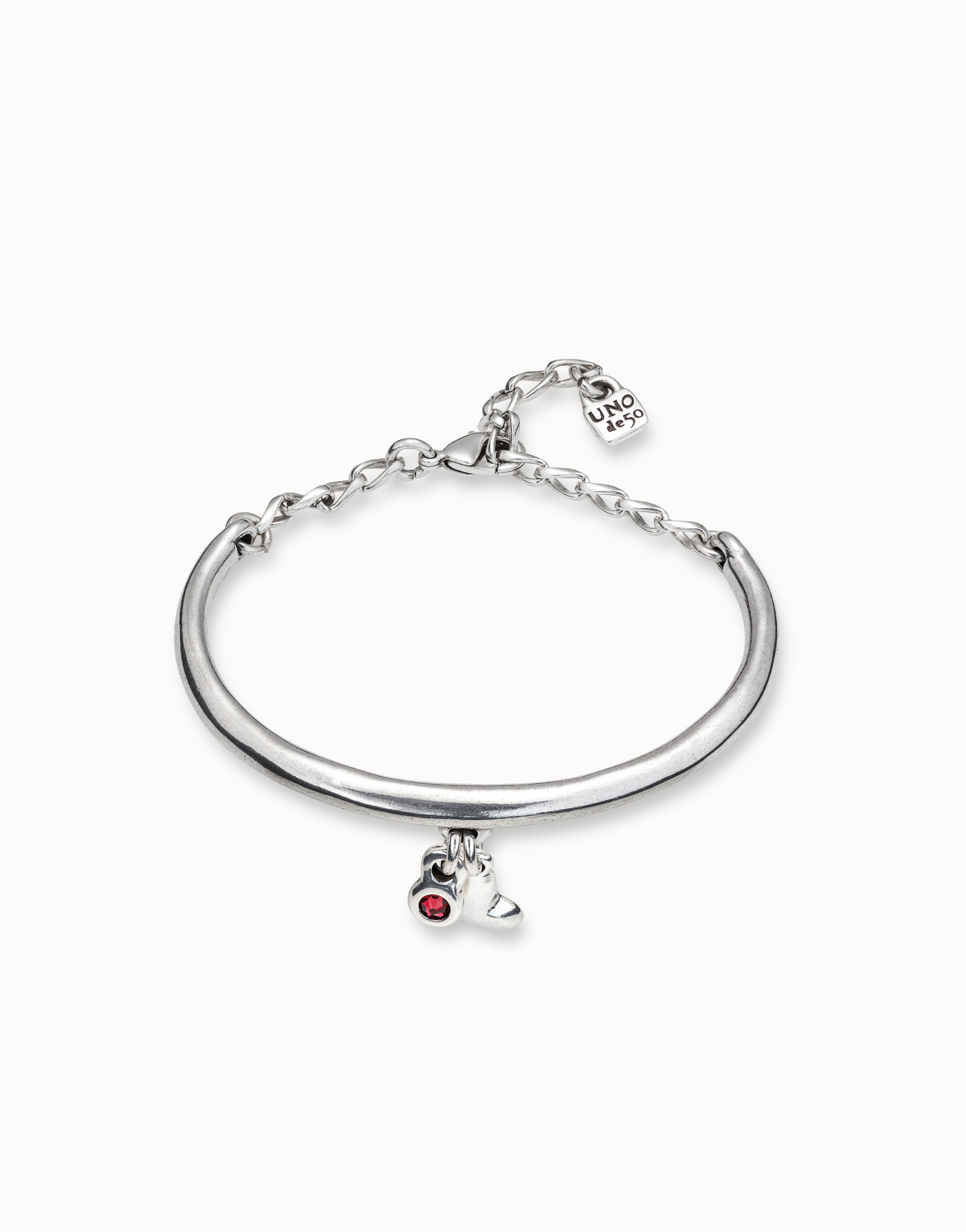The Lovekey bracelet is a unique design featuring a crystal and heart charm. Handcrafted in Spain from a silver-plated metal alloy using an entirely artisan process. It features a lobster clasp, allowing you to adjust the bracelet to the desired size. Wear this bracelet with the rest of the pieces from the collection for a one-of-a-kind look.